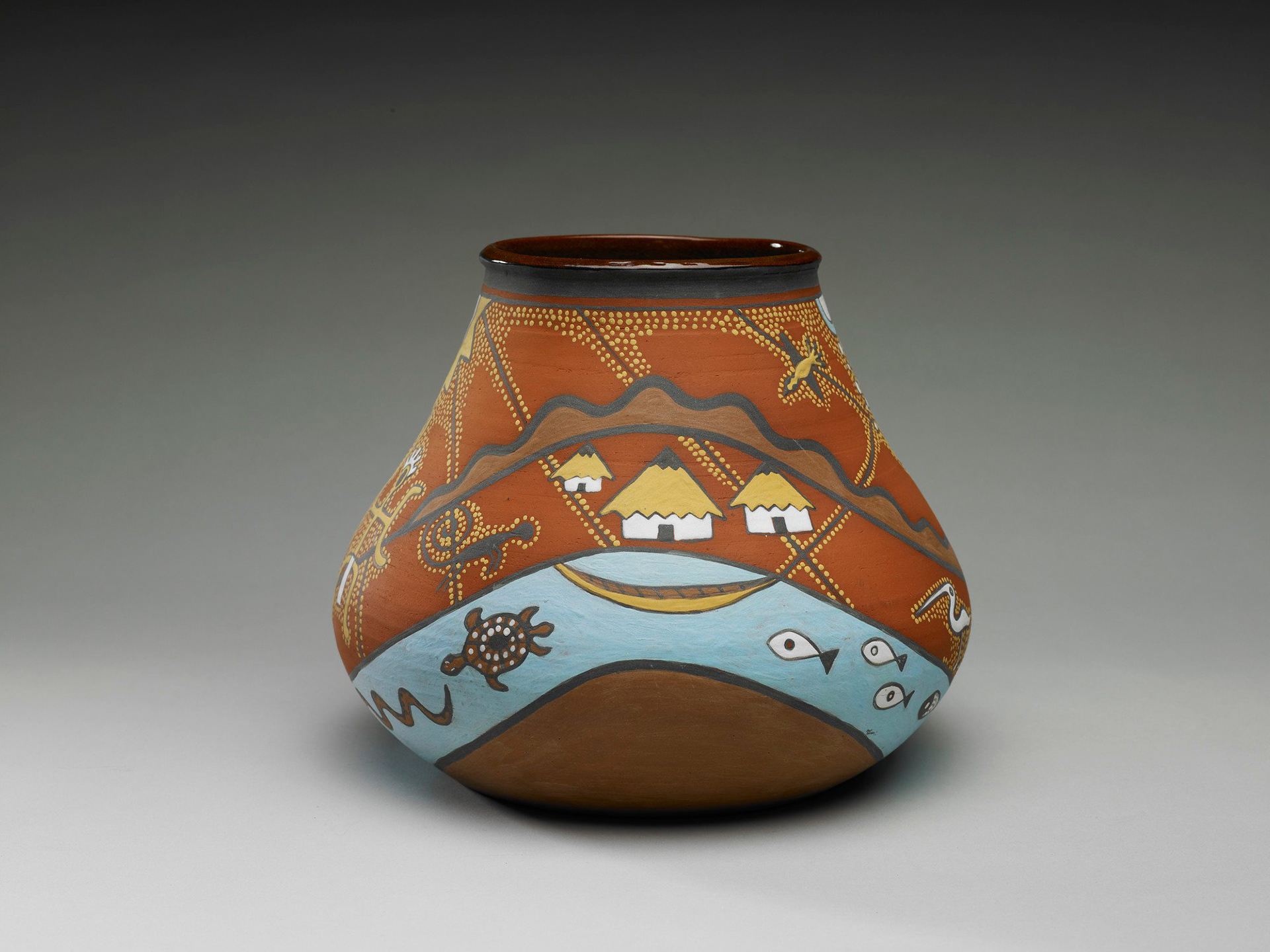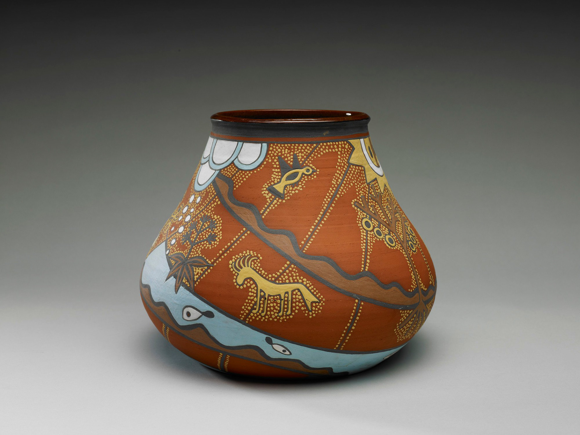 This is a vase that was referenced in the television series The Crown as broken, but wasn't. It was sitting in the Royal Collection Trust in England. After some art detective work, it was credited to Stephanie Correia, a Guyanese artist. Thanks Sasha for your essay that was a big clue. The episode is "Fagan" from Season 4, Episode 5.